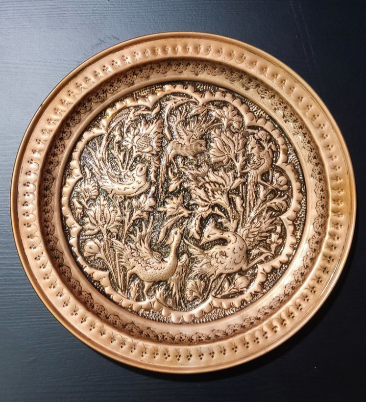 سینی مسی قلمزنی طرح درنا قطر ۳۱ سانت